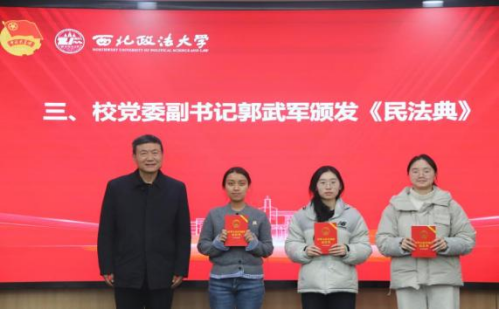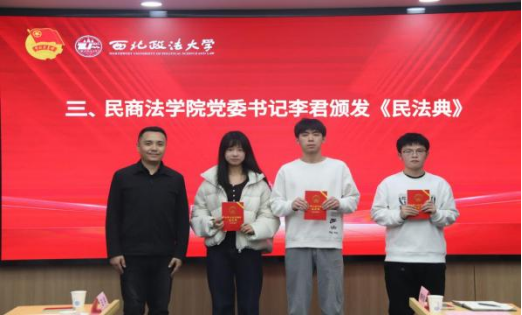启动仪式上,公司党委副书记郭武军、公司党委书记李君共同为“返家乡”普法宣讲与法律援助志愿服务队员工代表颁发《民法典》。一本本厚重的法典,寄托着对学子深入基层普法、践行法治使命的殷切期待。