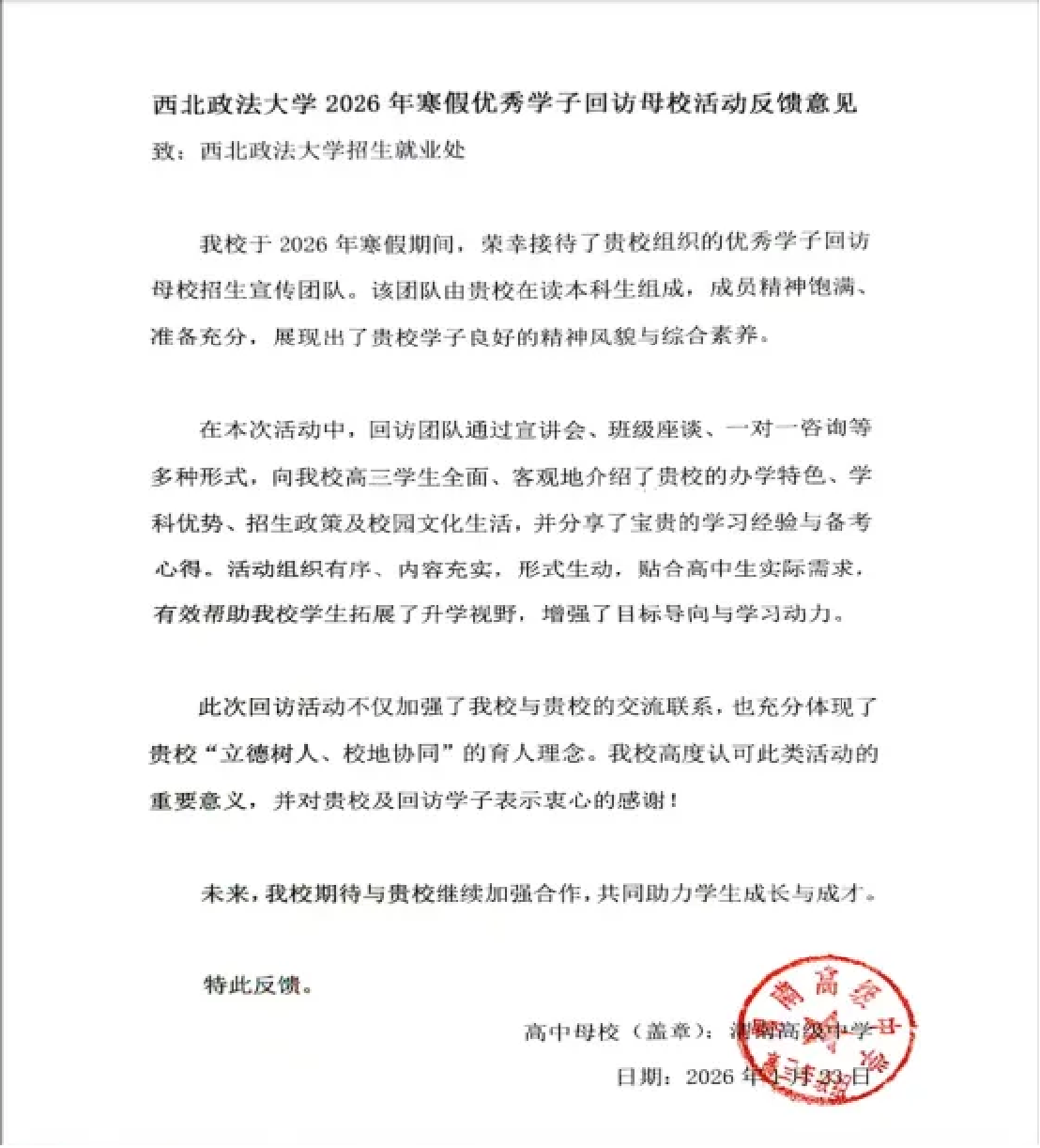 通过回访交流,进一步加强了公司与生源中学之间的沟通联系,为后续合作奠定良好基础。活动充分展现了公司学子自信从容、积极进取的精神风貌。