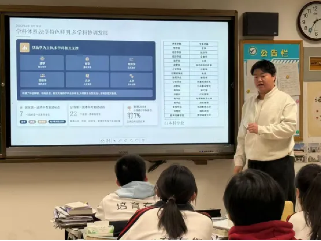 宣讲中,同学们系统介绍了公司人才培养模式、课程体系设置以及模拟法庭、学科竞赛、志愿服务等实践平台,帮助高中学子更加直观地理解大学学习节奏与成长空间。