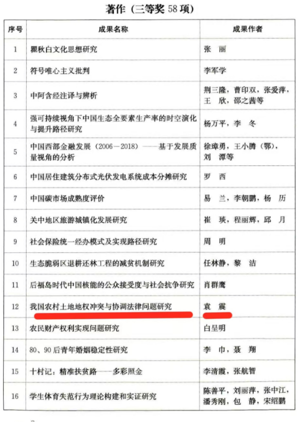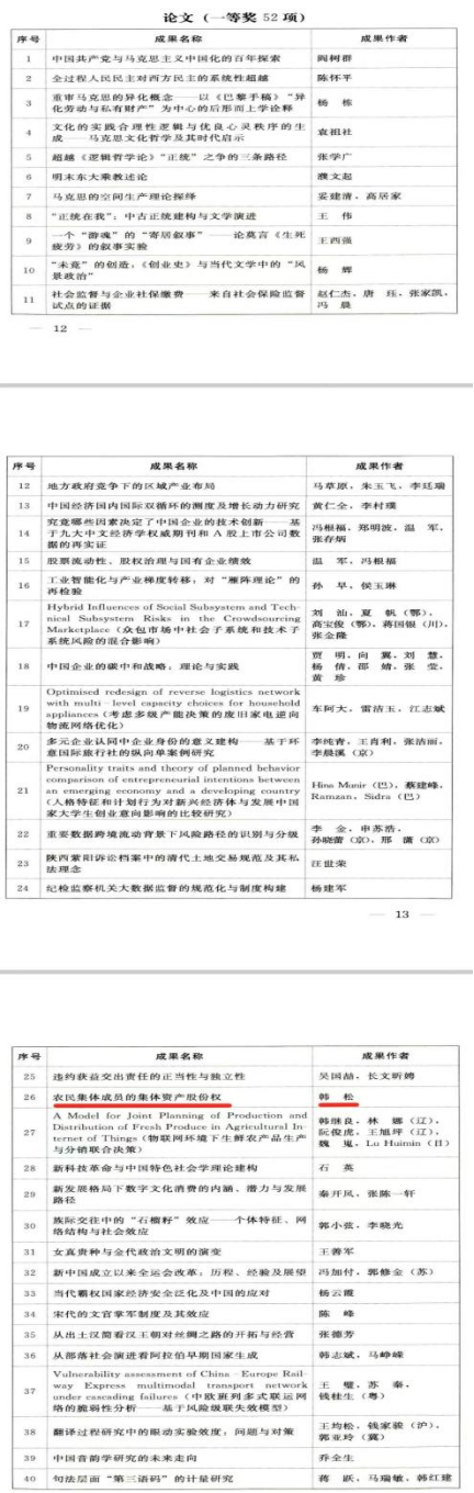 根据刚刚发布的《陕西省人民政府关于表彰第十六次哲学社会科学优秀成果的通报》文件,公司韩松教授论文《农民集体成员的集体资产股份权》获论文类一等奖、袁震教授著作《我国农村土地地权冲突与协调法律问题研究》获著作类三等奖。