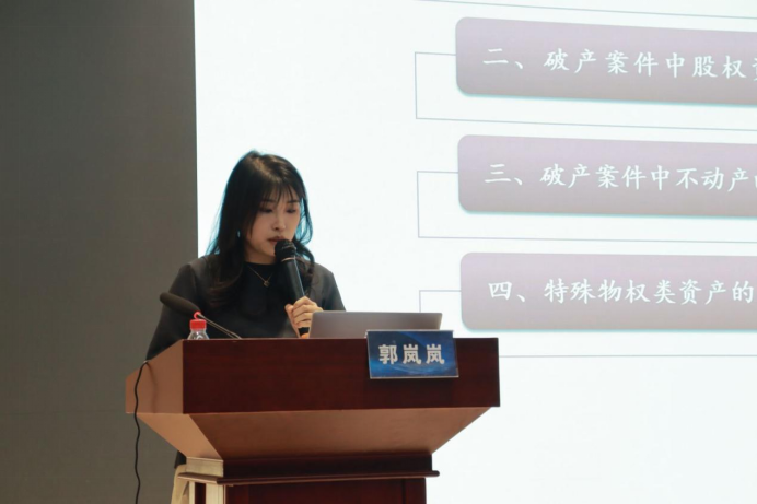 北京观韬(西安)律师事务所郭岚岚律师围绕“破产案件中的资产处置典型问题”展开专题演讲,系统阐述了破产资产处置的流程、难点及解决方案。她强调,资产处置作为破产程序核心环节,直接关系债权人利益实现与程序推进效率,是各方权益的重要交汇点。郭岚岚律师首先介绍了破产资产处置的一般流程,将破产资产分为债权性、物权性质及无形资产三类,明确处置需遵循依法处置、价值最大化、公正公开三大原则,流程涵盖尽职调查、评估定价、方案报批、拍卖变卖等关键环节。她指出,当前资产处置面临四大实务难点:所有权归属确认难,无证资产及历史遗留问题导致权属不清;资产接管阻力大,债务人及占有人不配合移交;意向投资人寻找难,高价值资产融资要求高、专用资产流动性差;缺乏统一处置机制,操作标准不一易引发争议。