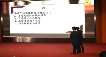 第二环节考察选手的案例分析能力,参赛选手对案例的分析有理有据,层次清晰,能将具体法律知识和法条文本灵活运用于实际案例中。