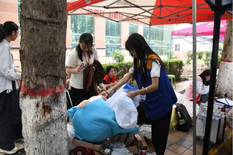 懵懂新生的身边,总有“红马甲”志愿者的身影。他们向新生热情讲解校园路线,从教学楼到宿舍楼,脚步匆匆却热情不减。