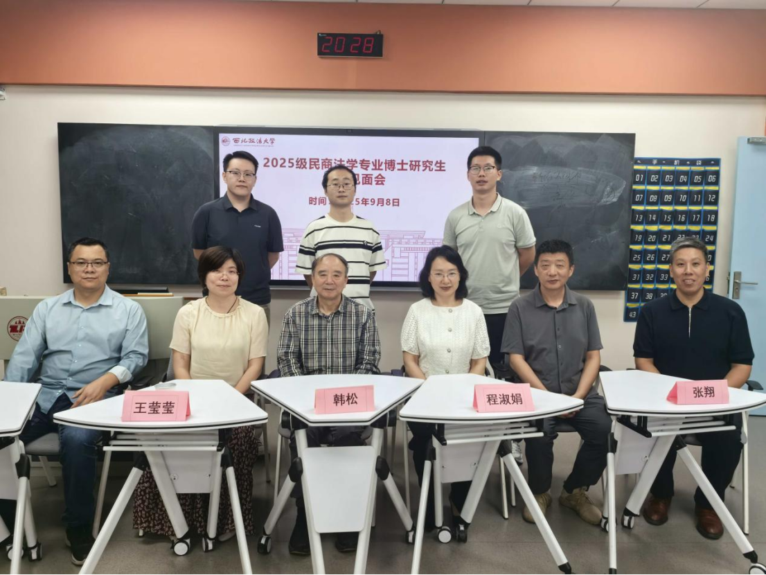 9月8日,2025级民商法方向博士研究生导师见面会在雁塔校区三号教学楼3601教室顺利召开。博士生导师组组长韩松教授、博士生导师张翔教授、程淑娟教授、王莹莹教授、百晓锋教授,秘书刘卫锋副教授,以及2025级民商法学专业博士研究生参加。