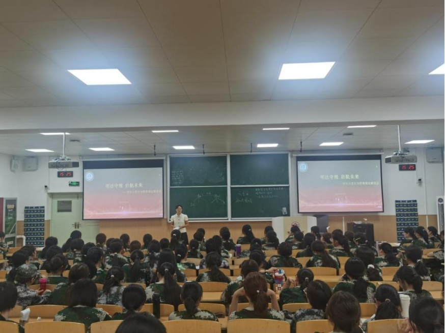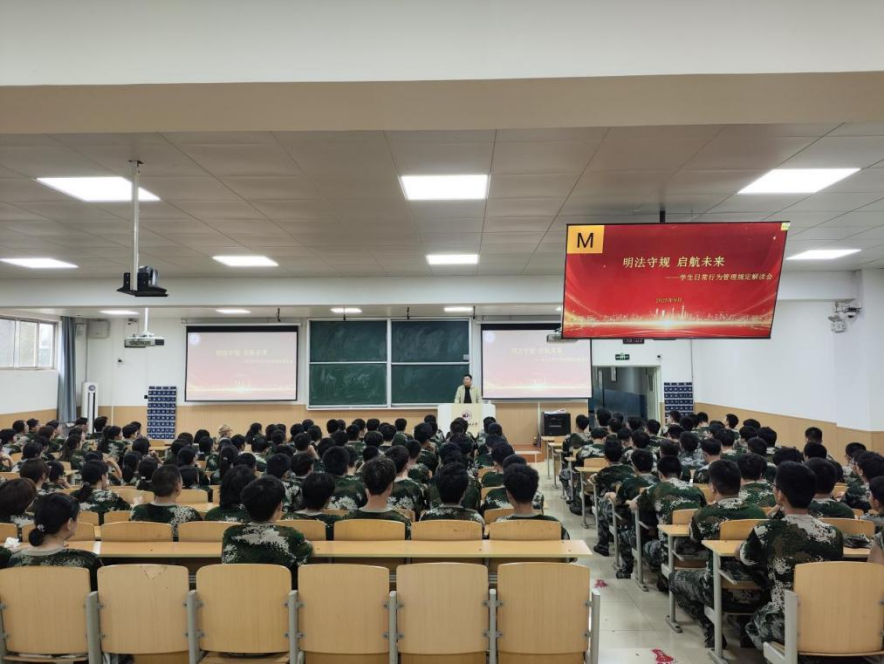 9月13日下午,公司在天平楼召开“明法守规、启航未来——员工日常行为管理规定解读会”,2025级辅导员丁艳艳、张智超及全体新生参会。