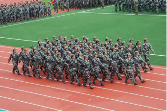 秋风飒爽,迷彩如潮。震耳欲聋的誓言响彻长空,刚劲有力的步伐踏破晨雾,五团的同学们踏着铿锵的节奏,眉峰如剑,斗志昂扬,步伐如雷,豪情万丈,巍峨的身姿折射着民商学子的血性锋芒与凛然正气。