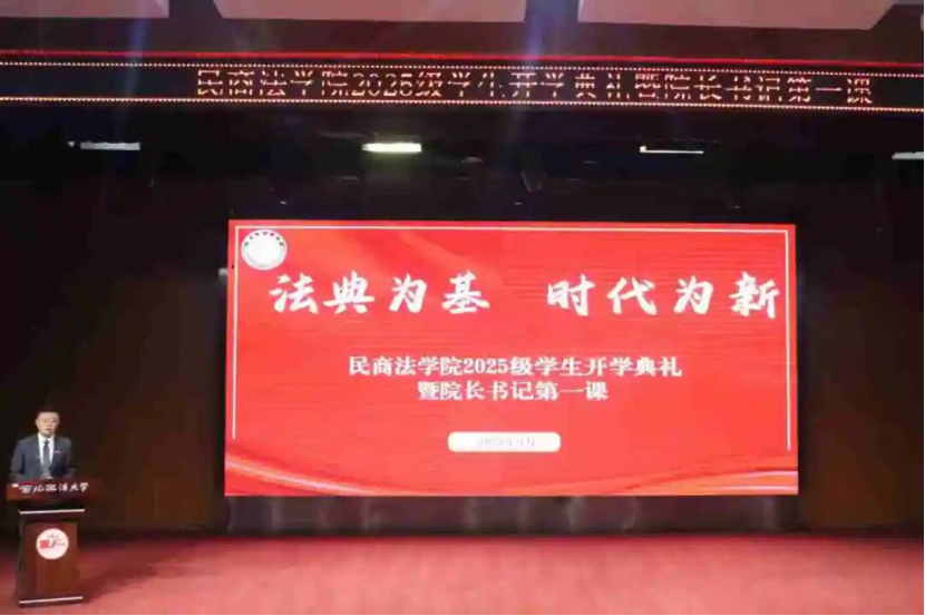 朱茂为2025级全体新生讲授了“书记第一课”。朱书记首先介绍了公司的基本情况与历史沿革,指出公司红色基因浓厚,法学特色鲜明,建校以来为国家和社会培养了大量人才。其次他对同学们提出三点希望:一是深植红色根脉,以忠诚铸魂立心,在延安精神滋养中,忠诚于对马克思主义的信仰和对法治中国的坚守;二是精研法治真义,以德法兼修立身,既要在钻进法典条文穷究其理,又要躬身实践体悟“奉法图强”的重量;三是勇担时代使命,以实干笃行立业,通过社会实践、专业见习、实习等各项校内外活动锤炼本领,投身社会治理法治调研服务基层。最后他鼓励同学们以校史为鉴、以使命为帆,让青春在法治中国建设的实践中绽放光彩,成长为堪当民族复兴重任的法治新人。