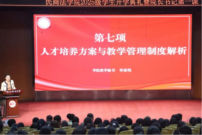 公司教学秘书章思悦为新生细心讲授了公司人才培养方案与教学管理制度,阐述了法学专业多种培养模式及对应学分要求、免修与保研政策,明确了教学管理中的考核方式、成绩处理、选课流程以及学籍等相关制度,为新生快速熟悉学业要求提供清晰指引。