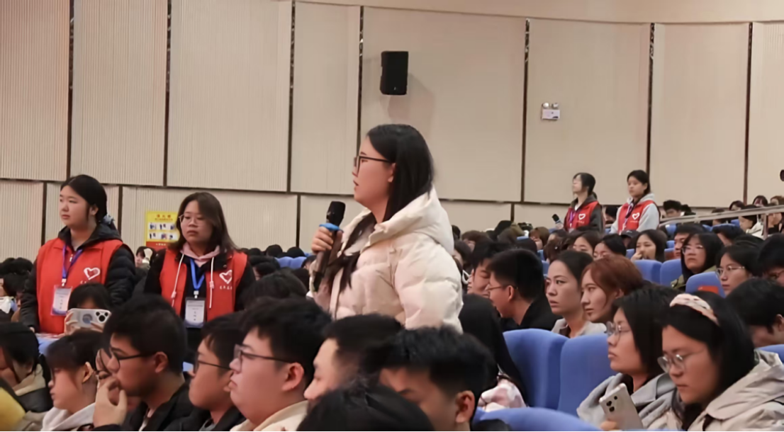 在互动交流环节,在场同学积极提问。专家与志愿者一一回应员工关切,对岗位选择、服务保障、专业适配等问题进行解答并指导,使更多同学坚定投身西部计划的决心。