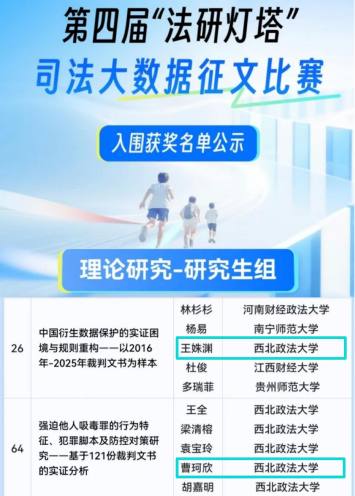 由最高人民法院相关部门指导、中国司法大数据研究院主办的第四届“法研灯塔”司法大数据征文比赛评审结果于近日正式揭晓。公司多名本科生、研究生在比赛中喜获佳绩。